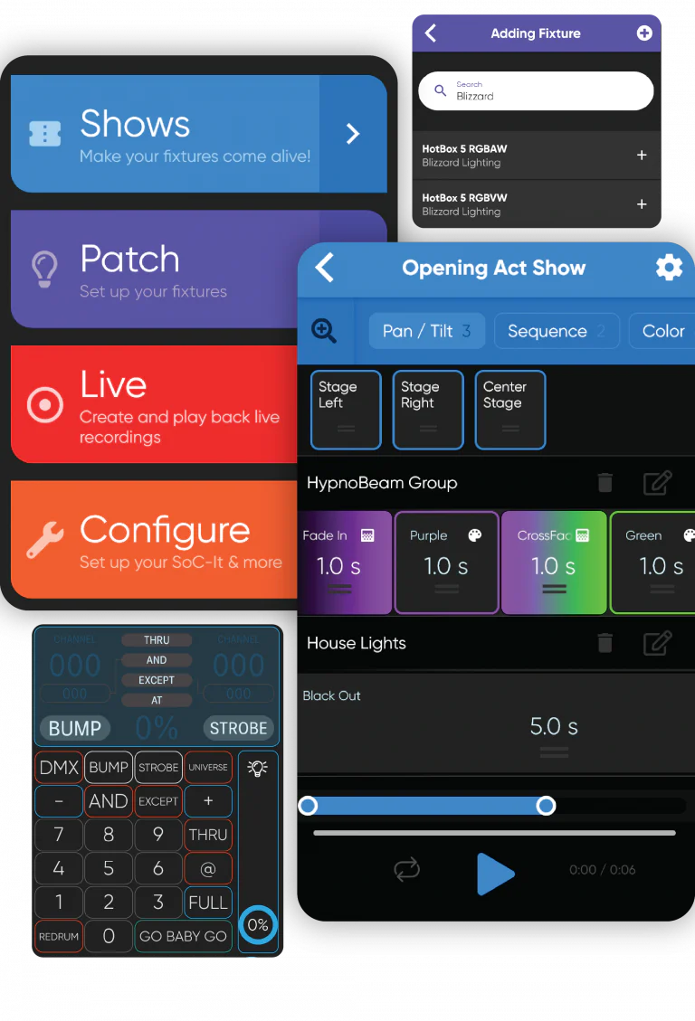 Control fixtures Connect with SoC-It, Art-Net, sACN devices