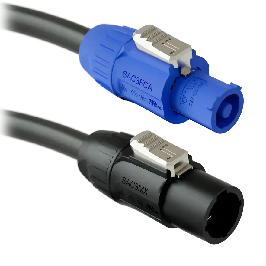 Cool Cable™ adapter cords make it easy to bridge standard powerCON and TRUE1 connections. Built with high-quality, UL-recognized components, these heavy-duty cables feature secure 3-conductor locking connectors with line, neutral, and premating ground contacts. Engineered for durability, they ensure reliable performance in demanding live and install environments.